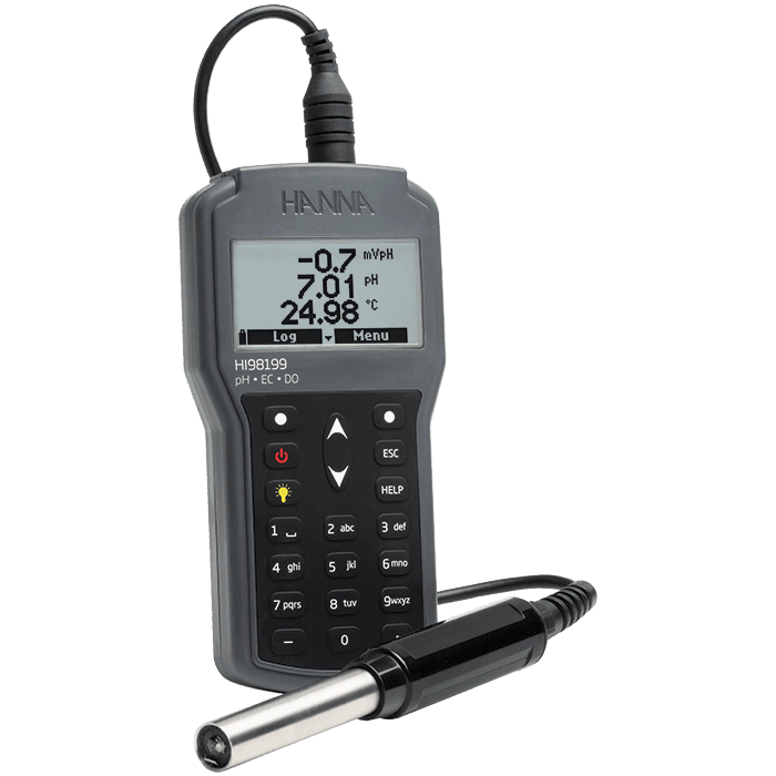 Para los científicos y profesionales que requieren mediciones precisas en el laboratorio o en la planta de producción, el HI98199 es un medidor versátil que puede medir el pH, CE, y el oxígeno disuelto cuando se le conecta el respectivo electrodo o sonda. Este versátil medidor se adaptará a sus necesidades específicas y su carcasa resistente le proporcionará varios años de medición ininterrumpida.