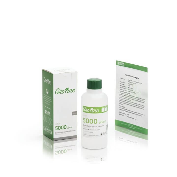 Estándar de GroLine para conductividad a 5,000 µS/cm con con certificado (frasco de 230mL)