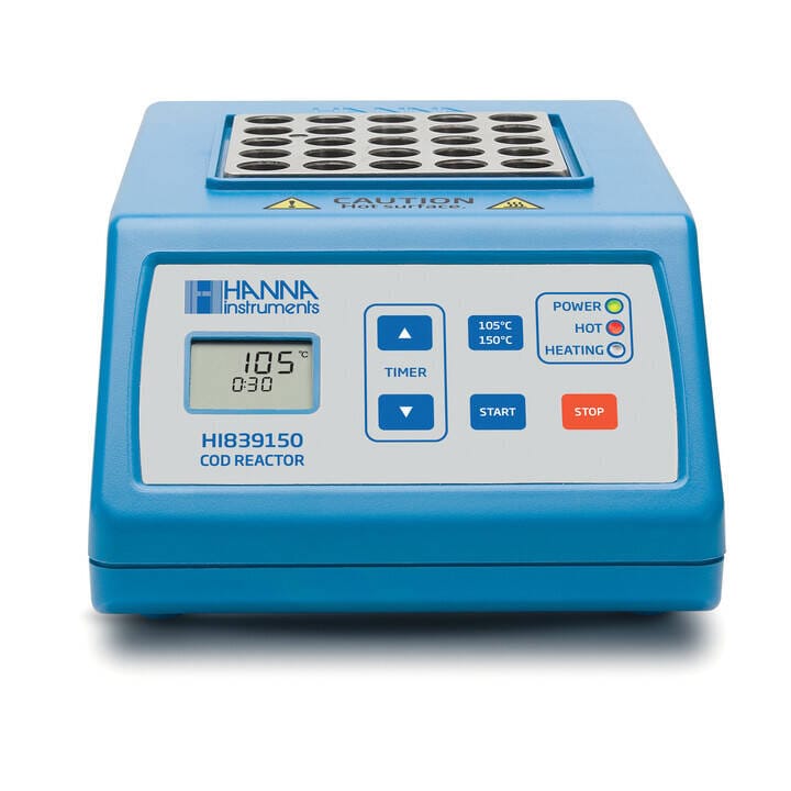 El HI839150 es un termorreactor robusto con capacidad de 25 viales para la determinación de DQO en aguas residuales industriales. El reactor tiene dos programas de temperatura de digestión almacenados que respaldan los métodos de análisis en: