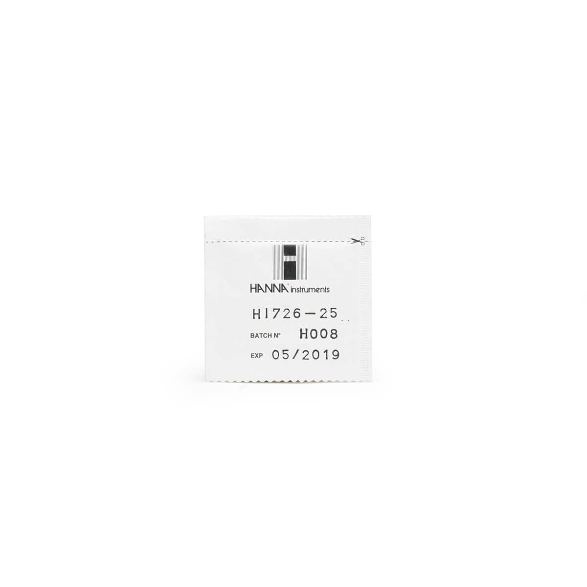 Los HI726-25 son los reactivos de reemplazo para el Checker® HC HI726 para níquel intervalo alto. Estos reactivos de alta calidad se fabrican en nuestras instalaciones de última tecnología y están claramente marcados con el número de lote y fecha de caducidad en cada sobre.