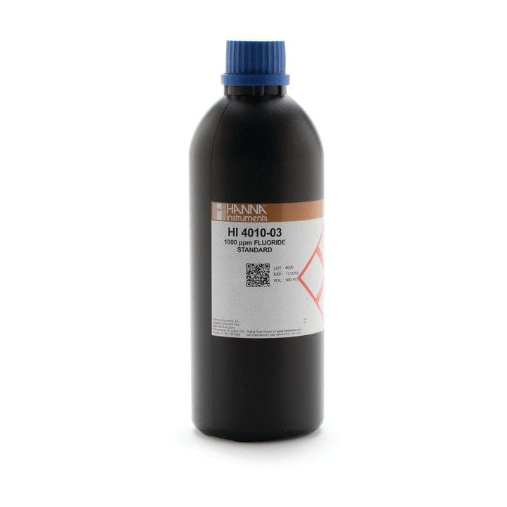 HI4010-03 es una solución estándar de fluoruro de 1000 ppm (mg/L) utilizada para calibrar el electrodo de ion selectivo (ISE) para fluoruro. Las soluciones estándar Hanna son fabricadas con productos químicos de alta pureza y envasadas en nuestras propias instalaciones de última generación.