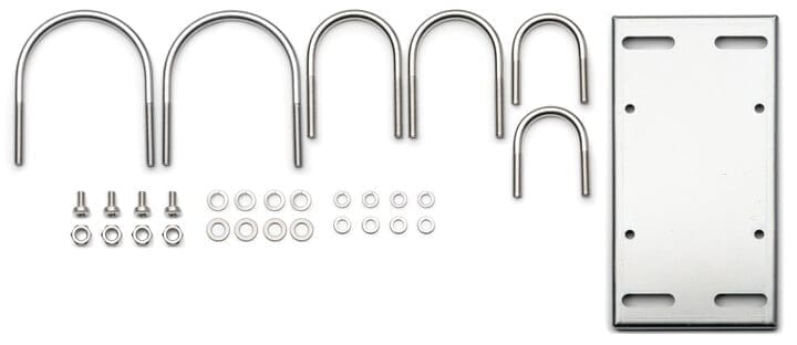 La placa presenta cortes en hendidura y los tornillos en U ayudan a fijarla al tubo.