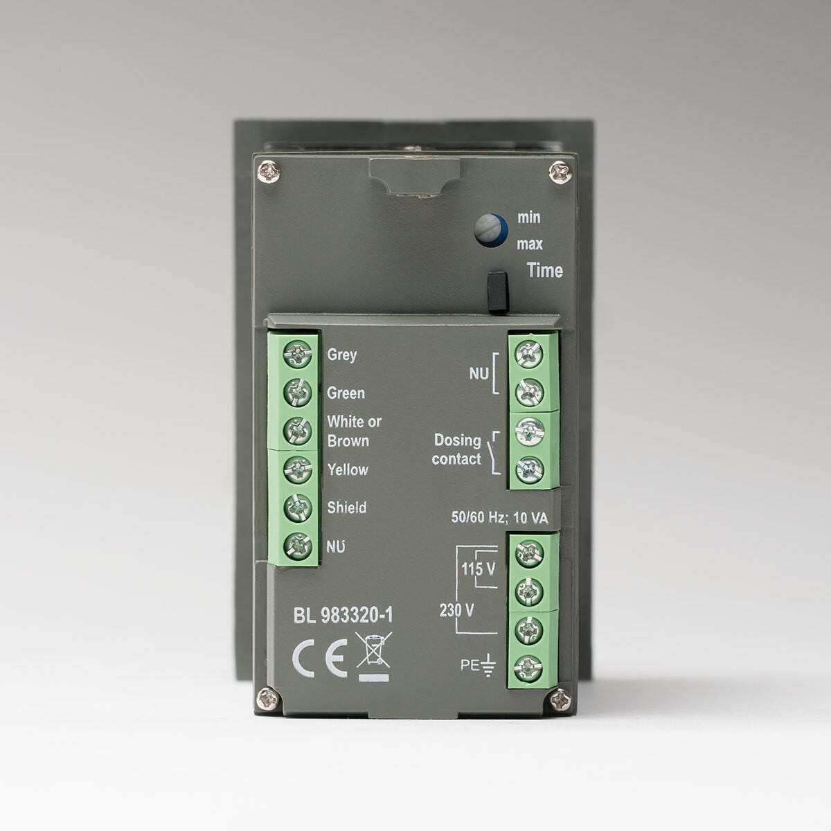 El BL983320 incluye un relevador de dosificación que se activa cuando la lectura está por arriba del punto de ajuste configurado por el usuario.