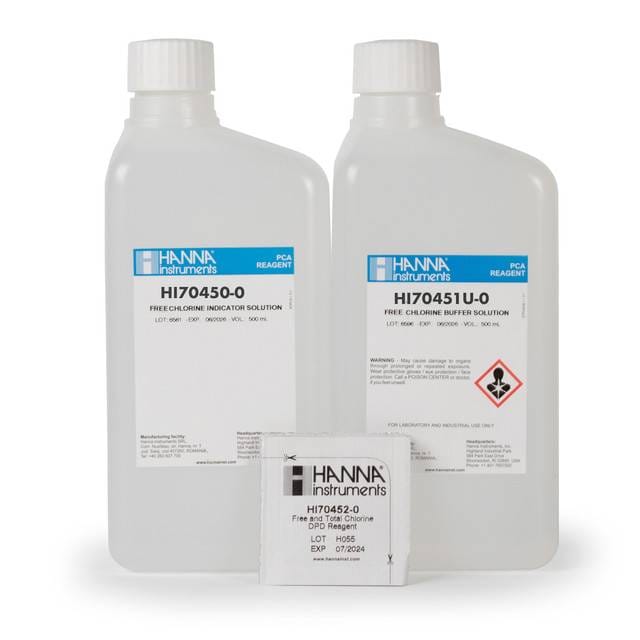 Reactivos de Cl libre de PCA (p/agua dulce) Incluye solución de calibración, indicador y polvo DPD